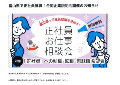 富山県で正社員就職!合同企業説明会開催のお知らせ