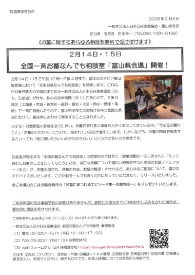 全国一斉お墓なんでも相談室「富山県会場」開催!